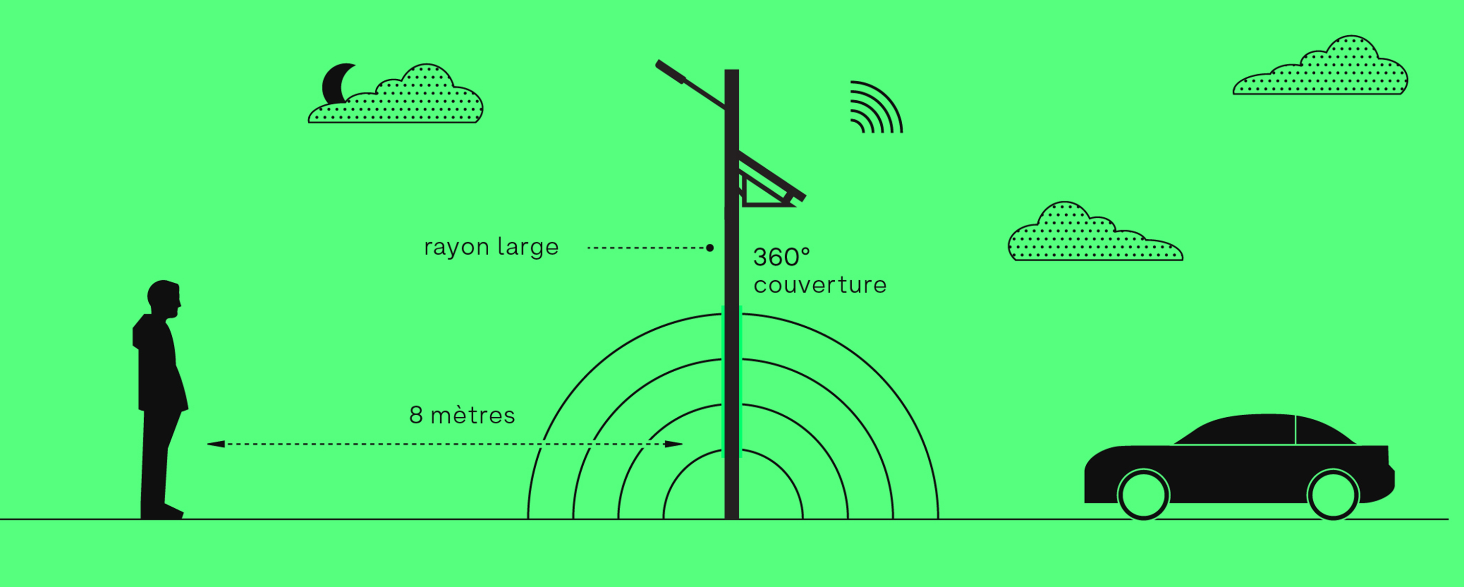 Les ReLight sont équipés d'un capteur de mouvement à micro-ondes intégré au luminaire qui détecte les mouvements des piétons, des cyclistes et des véhicules, garantissant ainsi une augmentation du niveau d'éclairage dès que la détection est déclenchée. Un plus en termes de sécurité tout en respectant l'environnement.